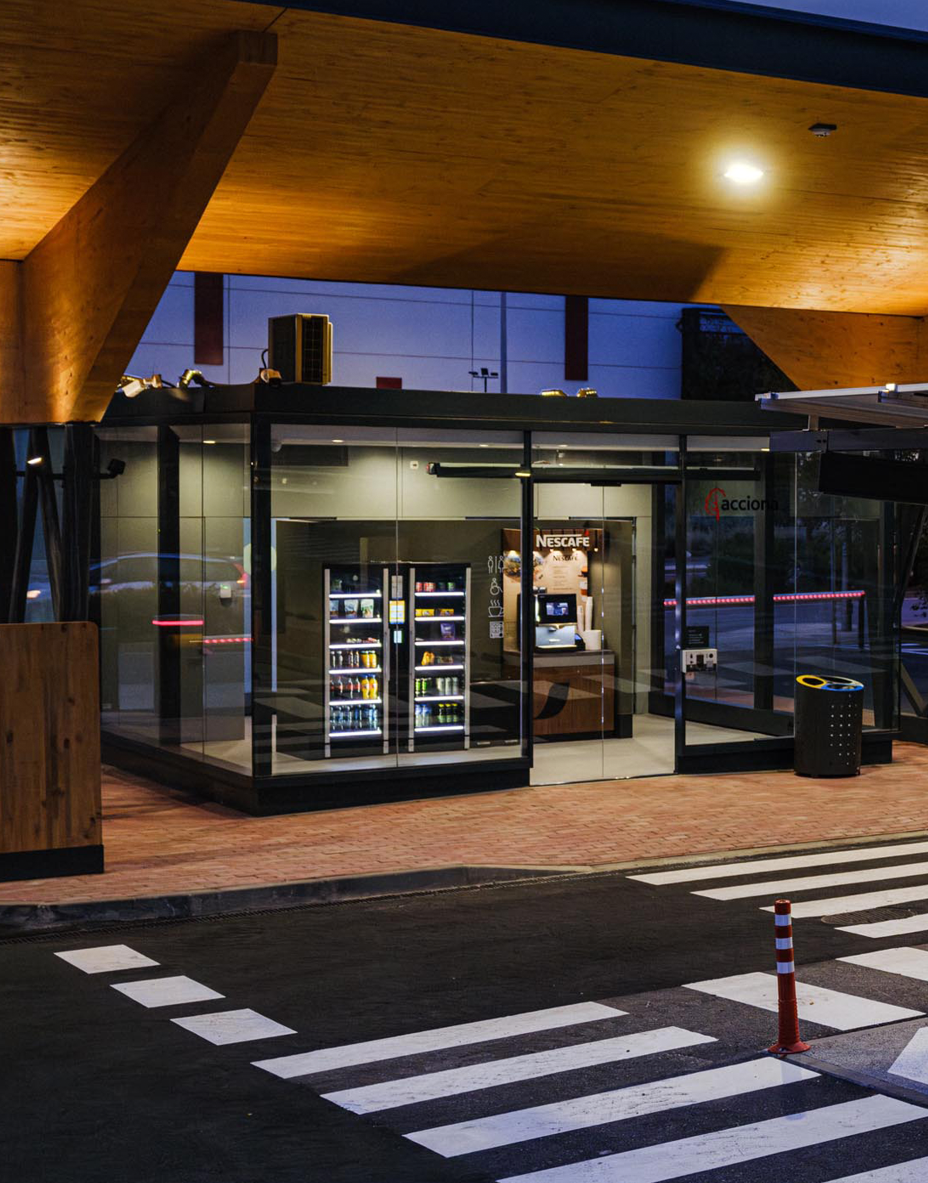 Mientras tu vehículo carga, disfruta de nuestra zona de confort, equipada con máquinas de vending y servicios.